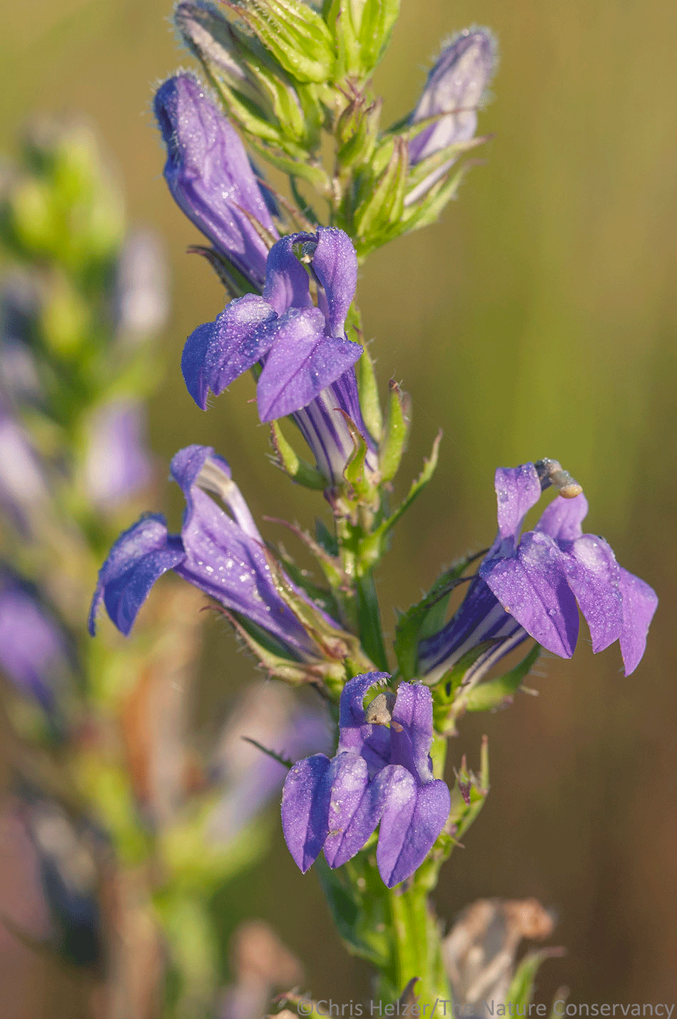 All three species are wonderful, and are always a welcome sight when they bloom. Cardinal flower is certainly the most spectacular, its scarlet color rare among wildflowers and particularly attractive to hummingbirds. Palespike lobelia doesn’t blare its presence nearly as loudly. It is often widely scattered across the prairie and its small flowers aren’t visible from very far away. Trying to find the post-flowering stems for seed harvest can be incredibly difficult, but each plant rewards the finder with hundreds of seeds. Blue lobelia has been the most difficult for me to photograph, but only because I struggle to get my camera to capture the beauty that is so obvious in person.