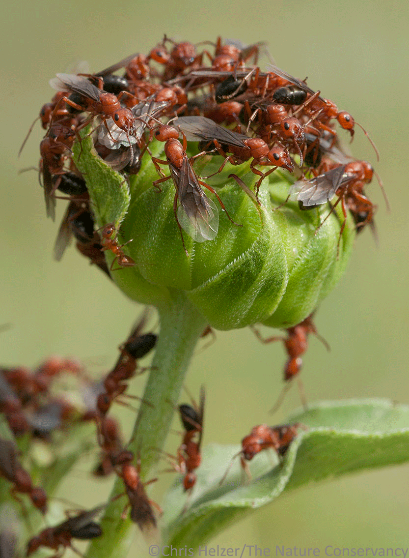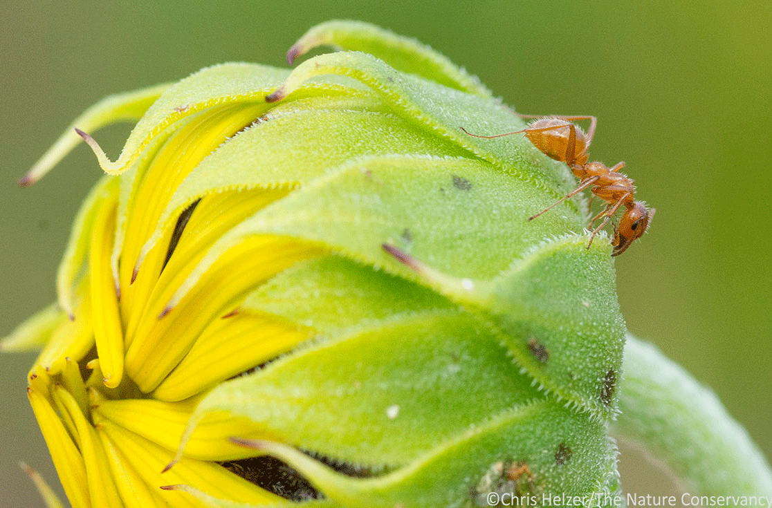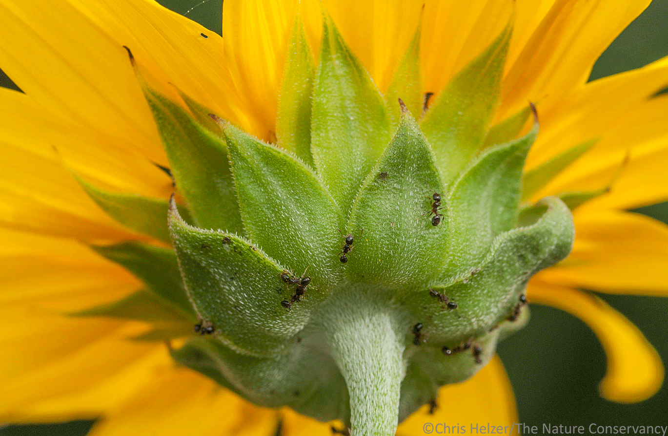 I notice this phenomenon most frequently on sunflowers, especially plains sunflower (Helianthus petiolaris), an annual plant common on sandy soils around Nebraska. Over the years, I’ve photographed a number of ants that have been drawn to sunflowers by the extra-floral nectar those plants have produced. Below is a selection of those images. The ants aren’t a foolproof strategy, and sunflowers still get eaten by lots of animals – large and small. Regardless, it’s an admirable and fascinating tactic in sunflowers’ fight to survive and reproduce.