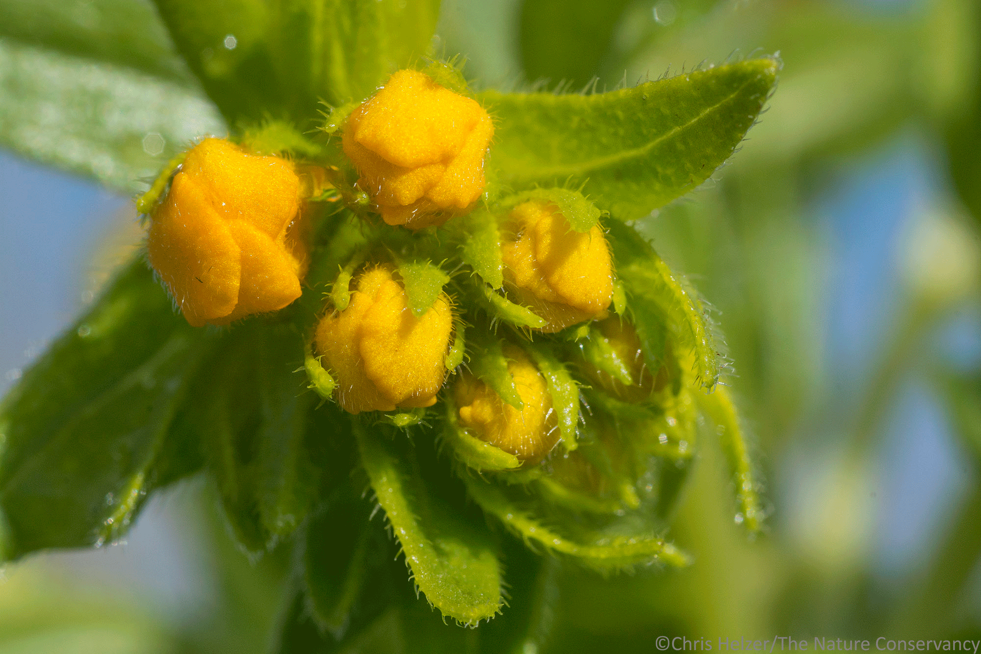 Flowers-in-waiting on a hairy puccoon plant (Lithospermum carolinianum).