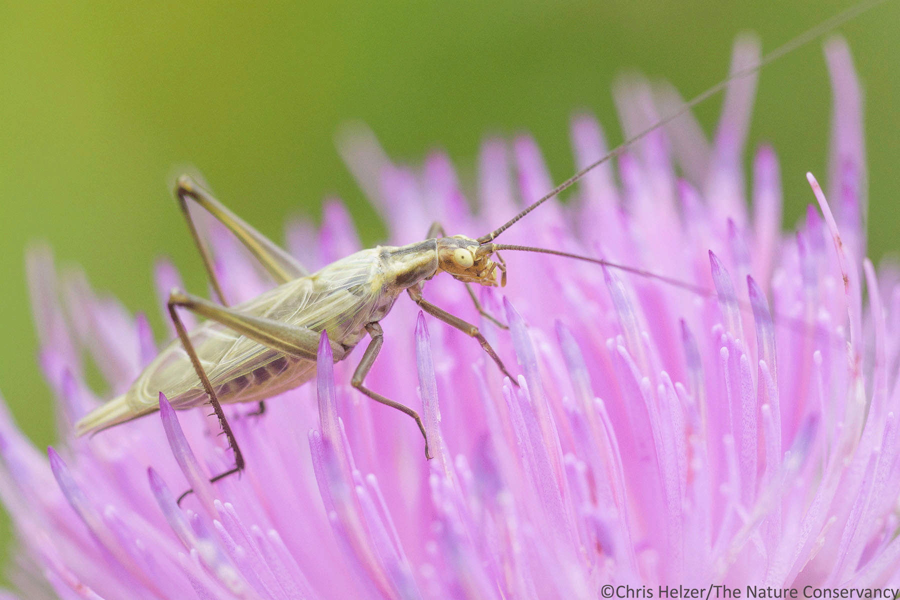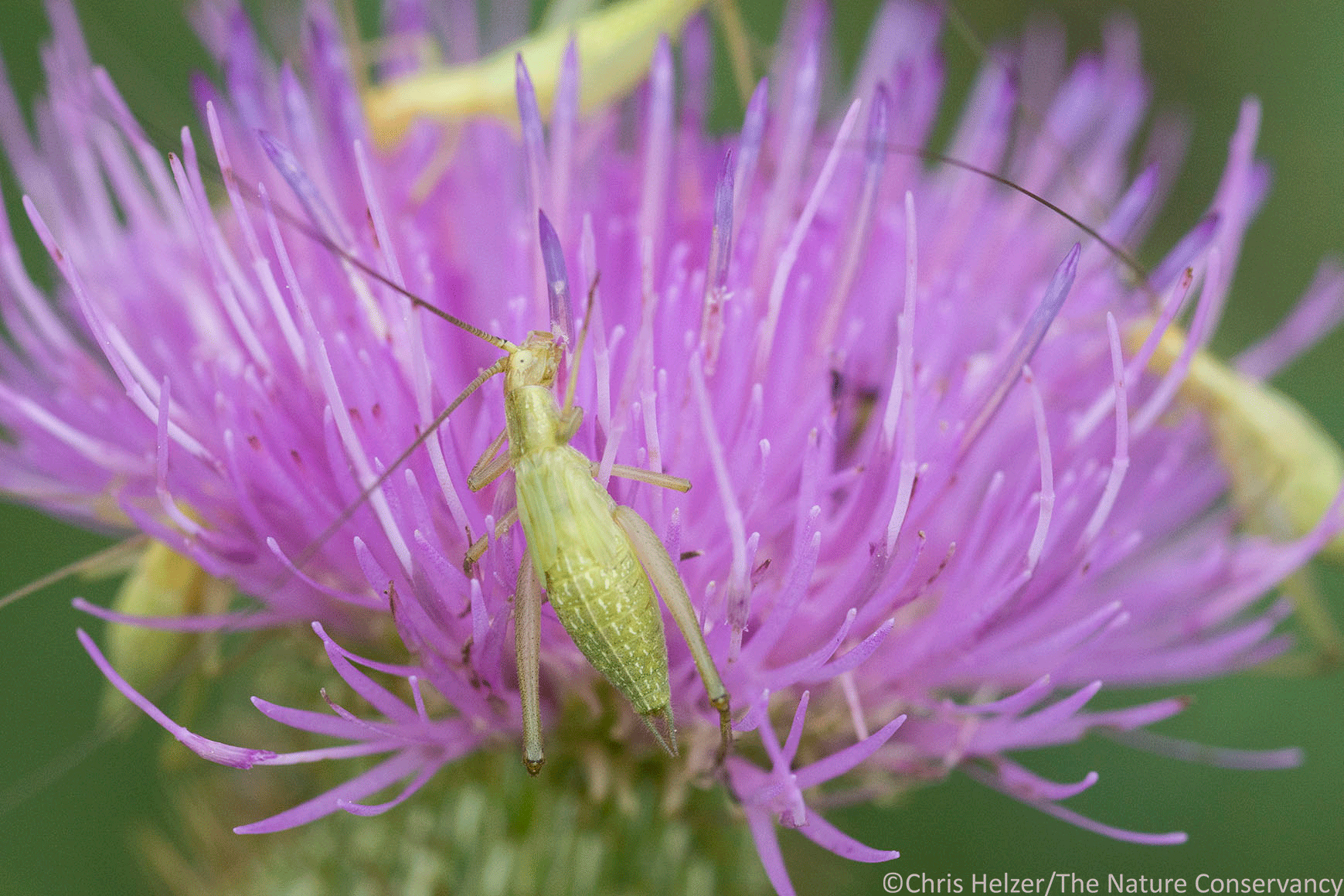 I enjoyed watching him clench his body into uncomfortable positions and shoot hundreds of rapid-fire shots, hoping one of them would be sharply focused. Maybe he managed to luck into a few good shots by doing that, I don’t know. I do know that my technique of using a tripod (or sometimes just folding the legs together to form a monopod) let me get some really nice photos of tree crickets – and other subjects.