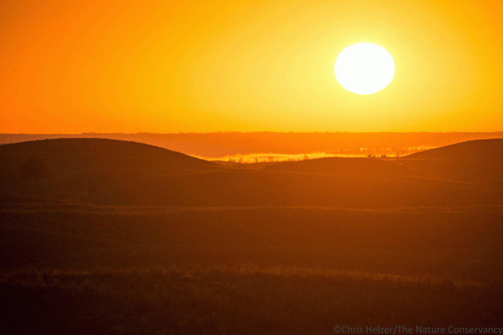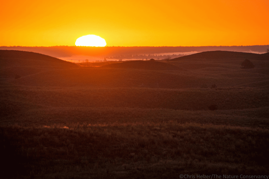 I broke pattern this week, though, at the Niobrara Valley Preserve. I meandered out early on Wednesday morning and saw a hazy horizon with an orange/pink glow where the sun was about to pop up. I climbed a big hill in the east bison pasture and captured photos of the sun as it peered over the horizon for the first time. I stayed on that hill for a few minutes, watching and photographing the sun as it climbed higher. After a while, I went looking for some subjects to put between me and the sun before it got too bright.