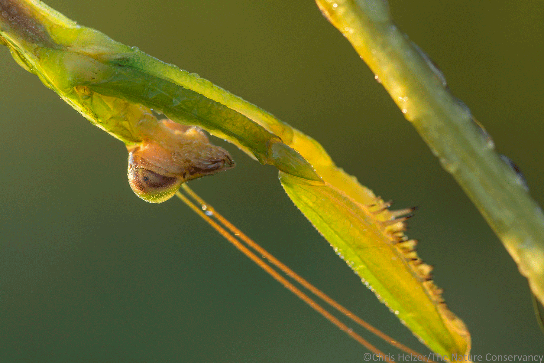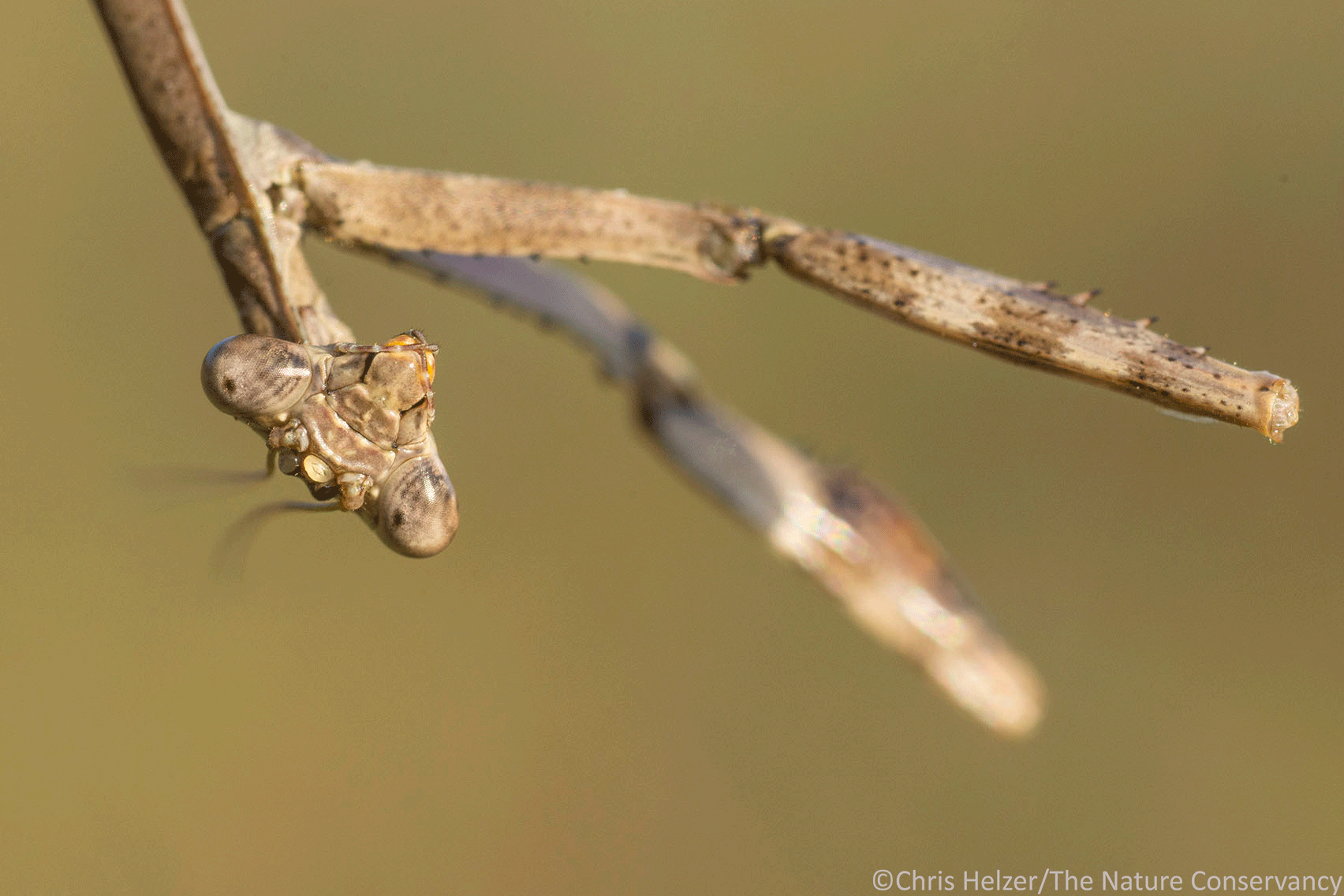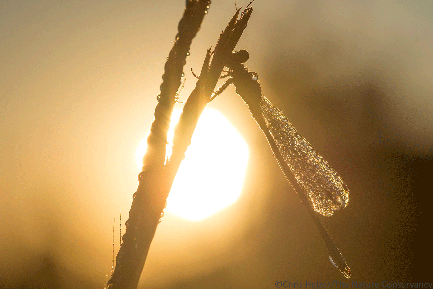 New England aster is a magnet for pollinators, including butterflies, bees, and flies – like this hover fly.Monarchs are seemingly everywhere right now as they migrate south after an apparently productive summer.This Chinese praying mantis was holding itself upside down and parallel to the grass stem it was hanging on to, making itself difficult to see.A tiny beetle is silhouetted on a common milkweed seed at sunrise.Nodding ladies tresses (Spiranthes cernua) seems abundant this year. This one is in a former crop field restored to prairie.A dewy damselfly at sunrise.Cardinal flower (Lobelia cardinalis) in a restored wetland.A native Carolina mantis in Lincoln Creek Prairie, here in Aurora.