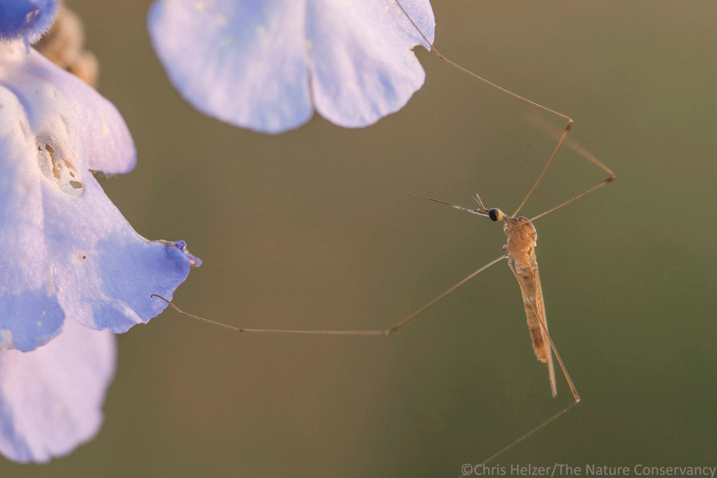 Crane flies look like huge mosquitoes but pose no danger to anything, at least as adults. As larvae, most live underground and feed on decaying plant material and microorganisms.