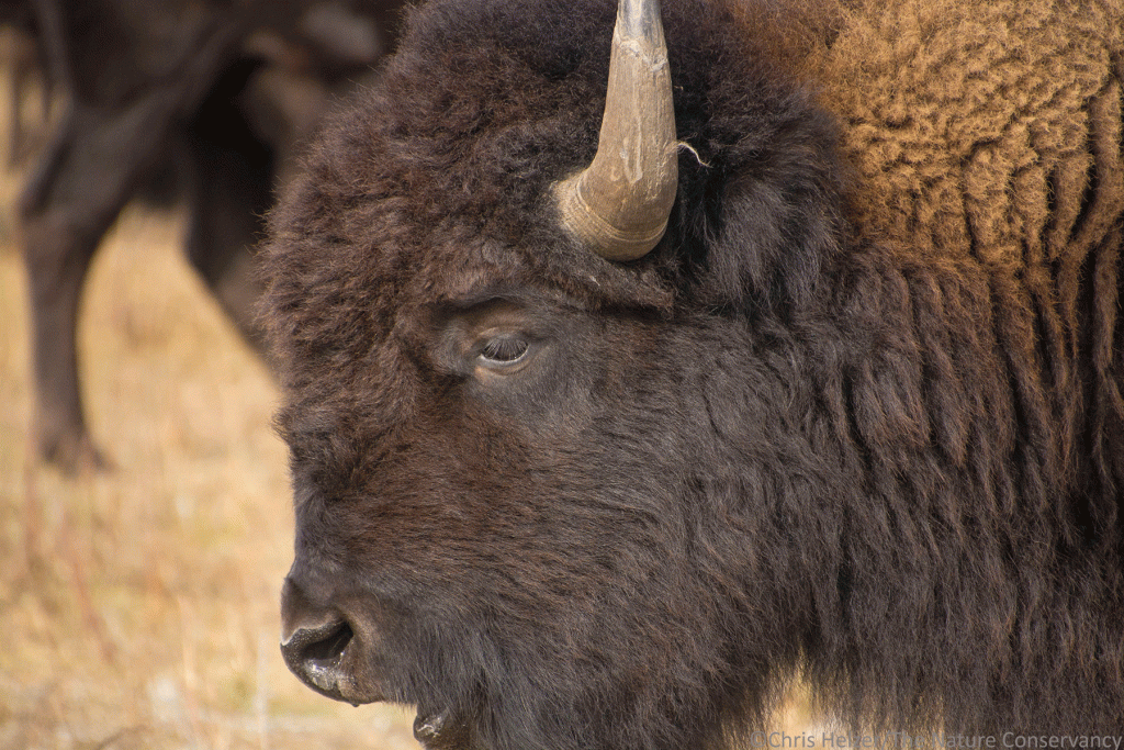 Great question. There is a lot of sun sedge (Carex heliophila) and some Kentucky bluegrass that is still green, but I think they persist for most of the winter on cured grasses. My understanding is that the shorter grasses (gramas, etc.) hold more of their nutrition than many of the taller grasses (big blue, indiangrass, etc.) but it still looks a lot like eating cardboard. And yes, the bison looks like she was looking at me. I hope she wasn’t, actually. I was trying to be surreptitious so as not to stress out the animals in the pen.