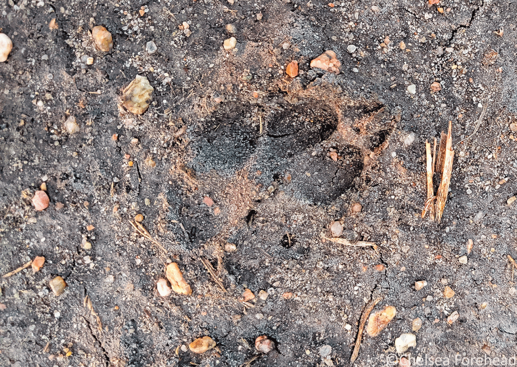Close-up of a coyote track. Photo by Chelsea Forehead.