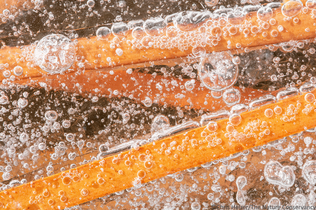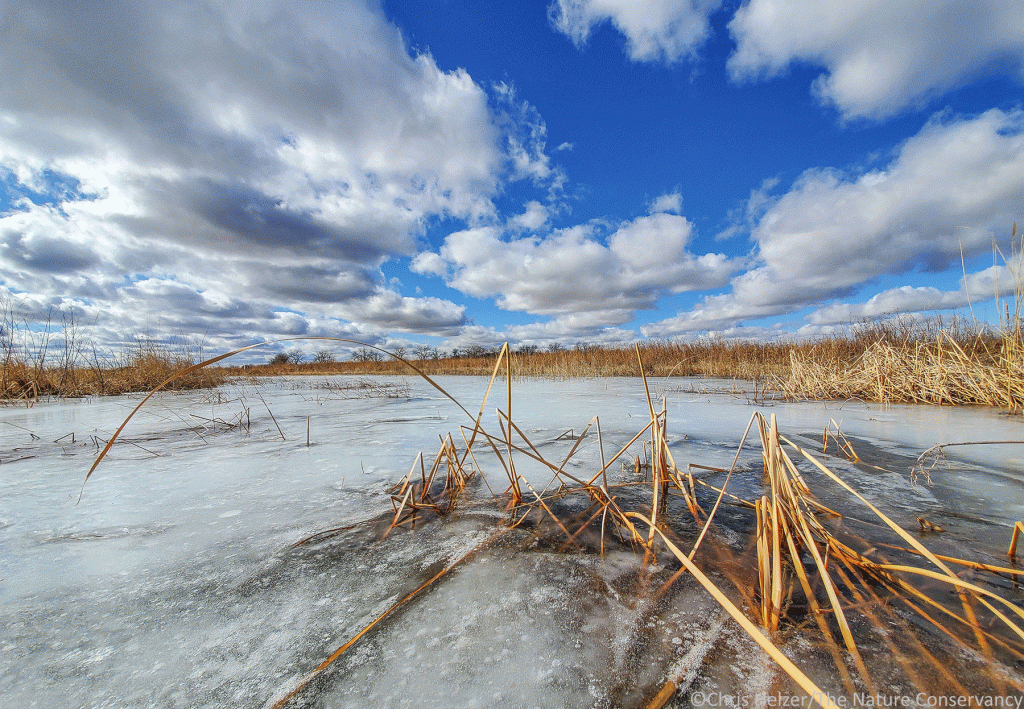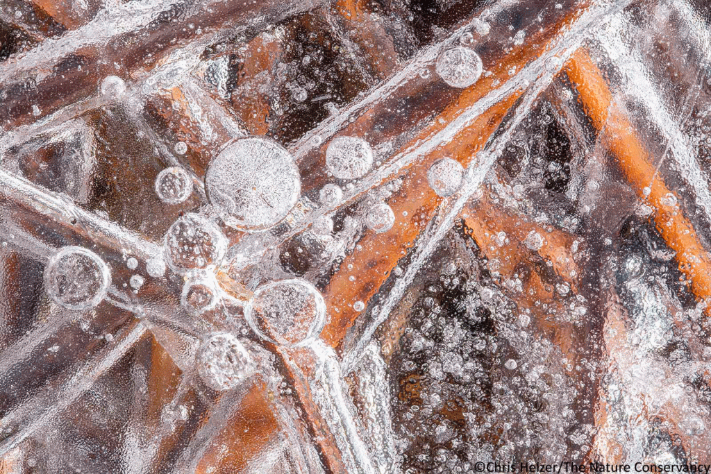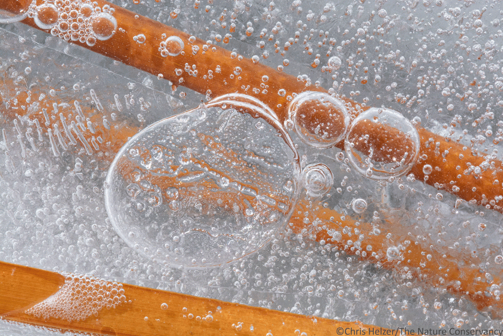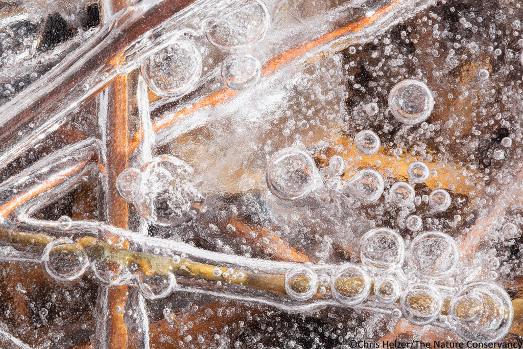 The sound of thousands of geese above me as I walked back to the truck promised the eventual coming of spring, but it will be a while before that promise is fulfilled and the prairies re-fill with verdant color and motion. In the meantime, I’ll take my photographic opportunities when I can get them, even if that means staring at frozen bubbles.