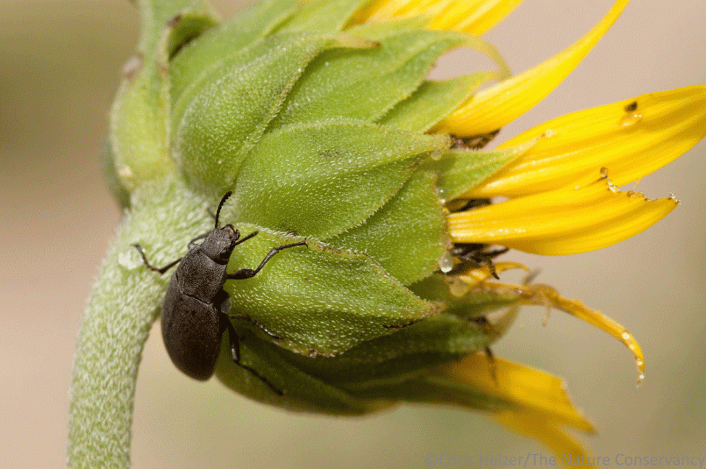 That last possibility reminds me of the silphium weevil, another beetle that lays its eggs on sunflower blossoms.  However, I doubt the beetle from these photos follows the silphium weevil’s example of girdling the stem beneath the flower before laying eggs on it.  You have to admire that strategy, though, because when the flower eventually falls to the ground, the larvae can hatch and burrow directly and safely into the ground where they overwinter.  The girdling might also make that flower less attractive to other invertebrate species (like our beetle?) who might be considering laying eggs on it.  That helps ensure more food for the weevil babies.  It would be really neat to know that our beetle has that kind of strategy, but it probably doesn’t.  It has its own unique and mesmerizing approach to life.
