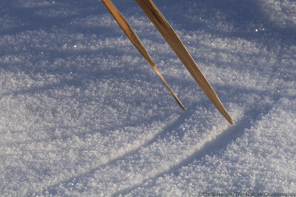 I’m glad I braved the cold (with no wind, it really wasn’t too bad). By noon, the sun and quickly warming temperatures had already melted much of the snow. That means no more grass leaf etchings until the next snow, and who knows when that will happen. Sandhill cranes are starting to invade the Platte River valley already, joining the hordes of geese and ducks already here. Spring is coming.