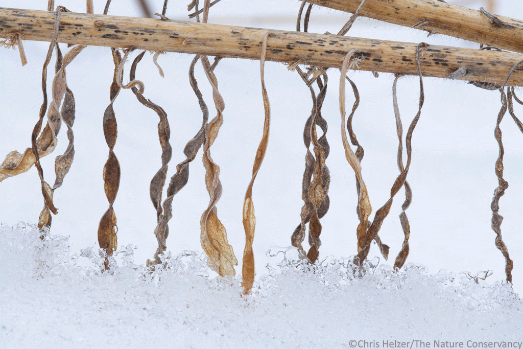 This marestail (Conyza canadensis) plant was laying horizontally above the snow – its twisted, wrinkled leaves dangling down into the snow.
