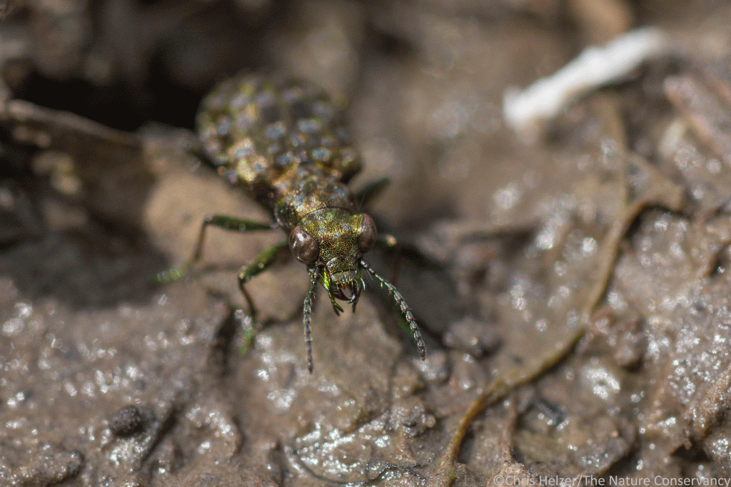 The sparkly finish on the beetle’s elytra and the indented pattern were mesmerizing. I tried to keep track of it for as long as I could as it meandered in and out of cover along the muddy bank.
