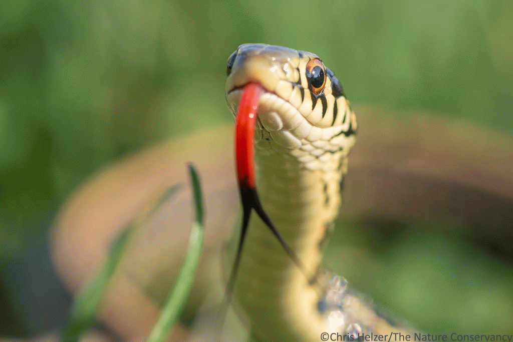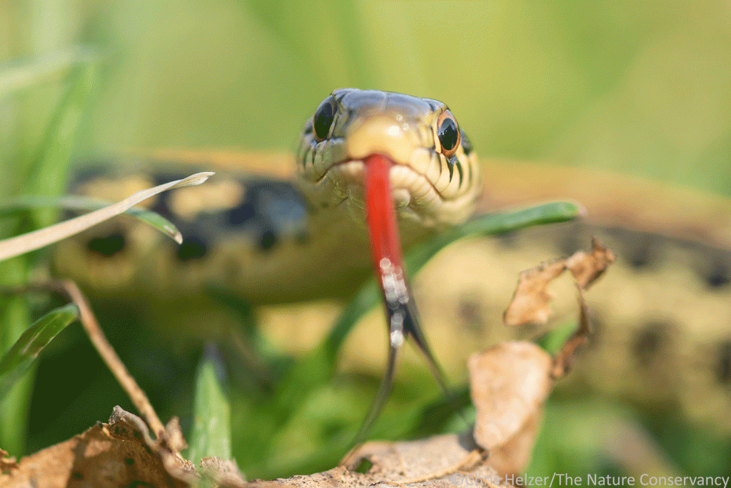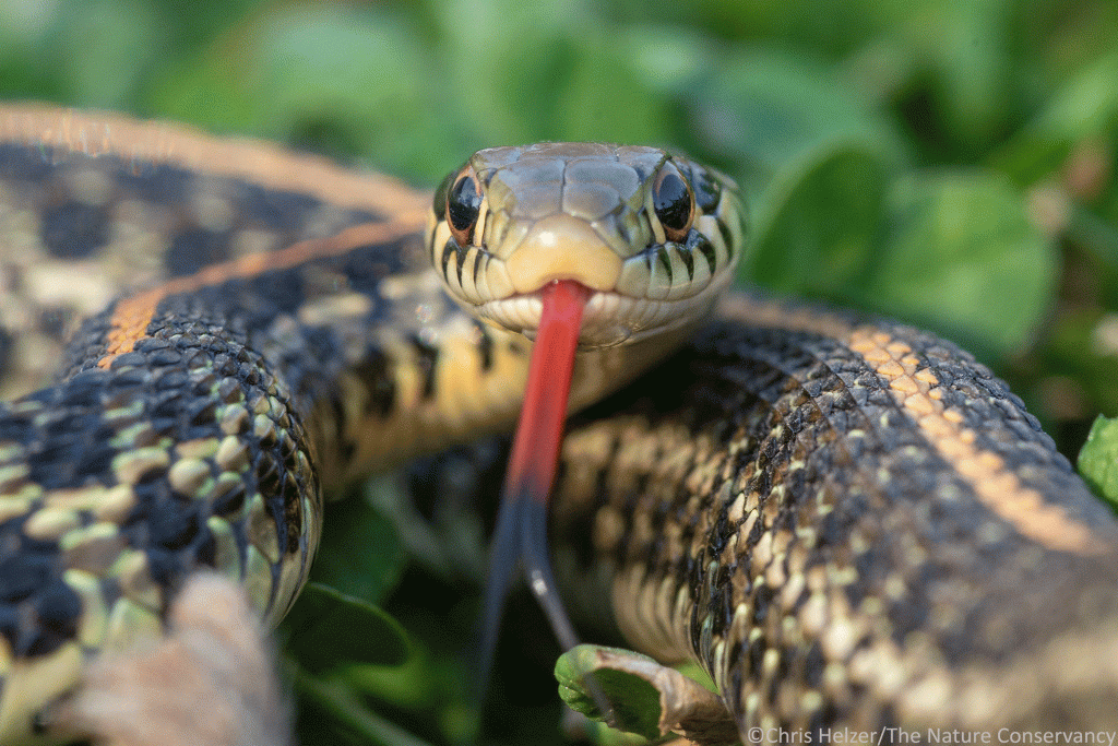 I’ve been trying to photograph as much as I can in our yard, hoping to highlight the nature that can be found right outside your window or door right now. I’ll share more of those backyard photos in coming weeks, but this week I’ll focus on one gorgeous plains garter snake that was warming itself in our garden while Kim and I were working in the yard.