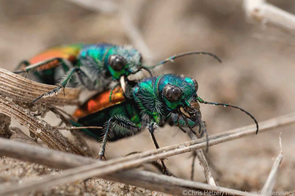 More and more insects are becoming active as well, including these festive tiger beetles (Cicindela scutellaris).