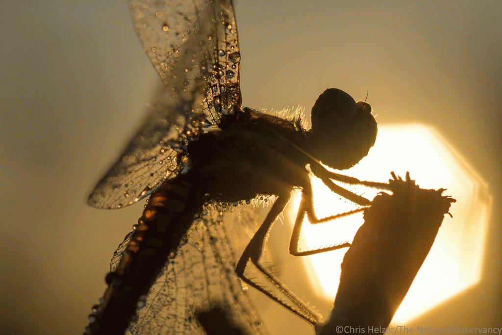 Dragonfly and sunrise. Lincoln Creek Prairie.