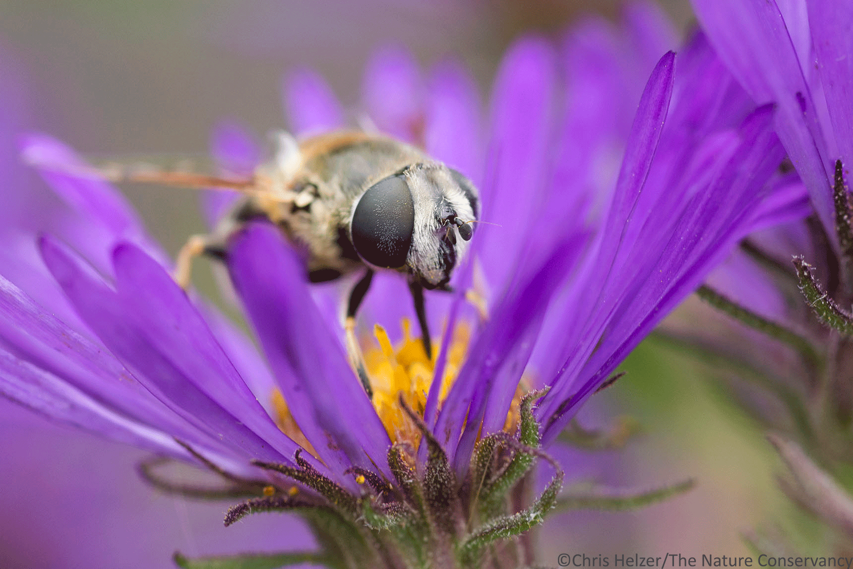 Hover fly and New England aster. Lincoln Creek Prairie.