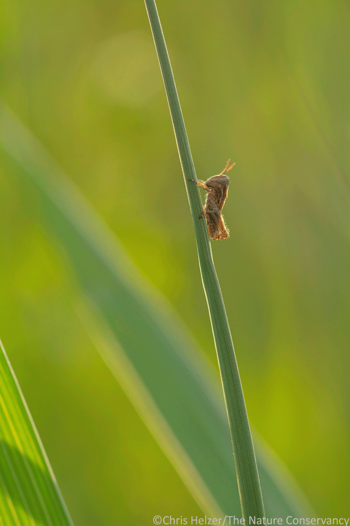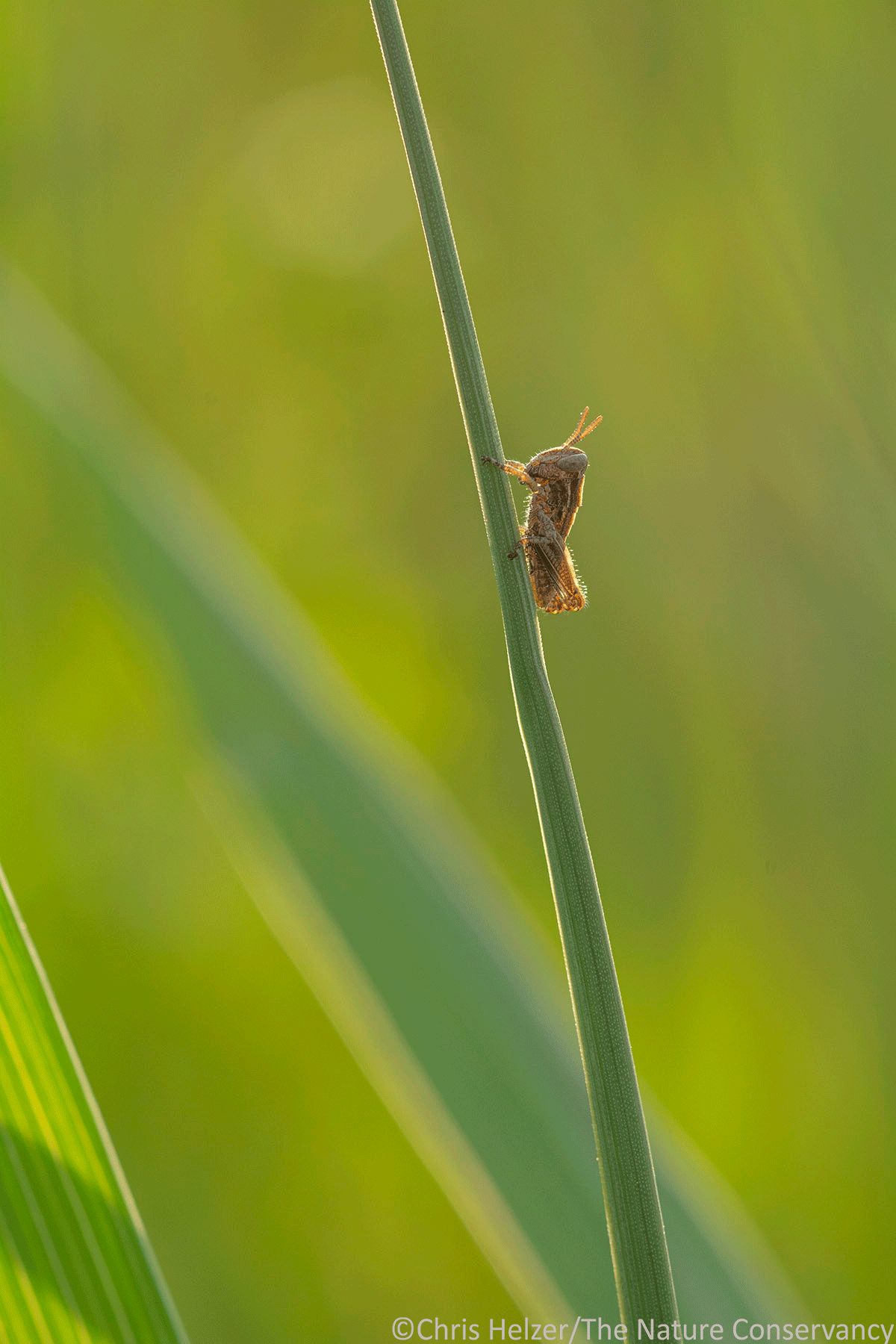 Despite the fact that a surprising number of invertebrates migrate, there are many more (I think?) that stick around for the winter.  Watching for their first appearance each spring is a great way to figure out whether they overwinter as adults, eggs, or larvae.  For example, seeing grasshoppers or leafhoppers at their full adult size and with functional wings in April or early May is a good indication that they overwintered as adults.  However, there’s a lot of variation within insect groups, so seeing an adult grasshopper in April doesn’t mean all grasshopper species follow that same pattern.  In fact, most of the grasshopper species I find in the spring are tiny little nymphs, which I assume hatched out of eggs within the last week or so.  There were scads of those tiny nymphs around our family prairie over this last weekend.