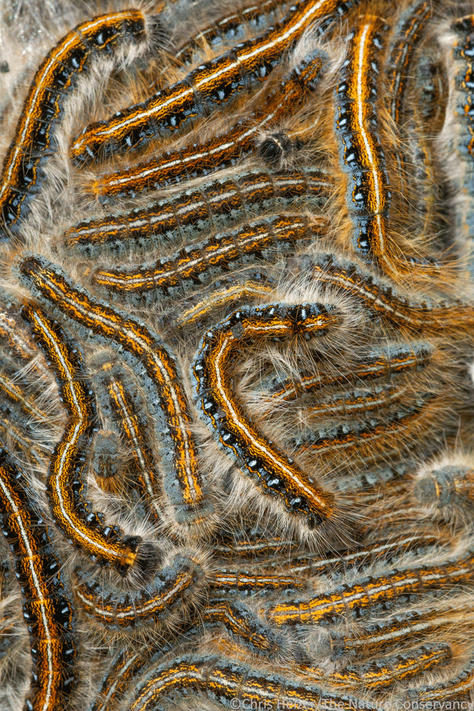 Native eastern tent caterpillars (Malacosoma americanum) congregate on chokecherry at the Niobrara Valley Preserve.