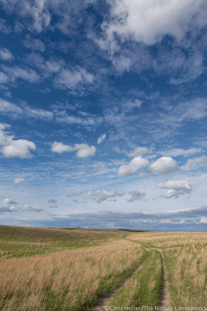 Sandhills prairie, trail road, and sky. Niobrara Valley Preserve.