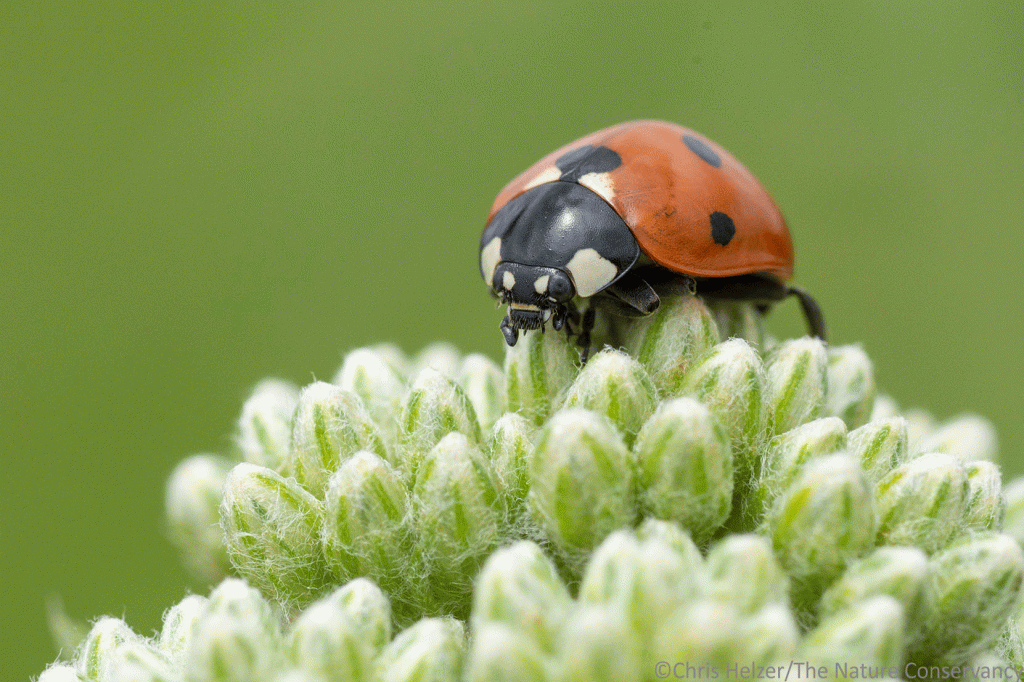 A non-native seven-spotted ladybird beetle. Helzer family prairie.