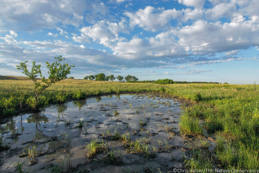 A temporary wetland after recent rains at the Platte River Prairies. Tokina 12-28mm at 12mm. ISO 500, 1/125 sec, f/18