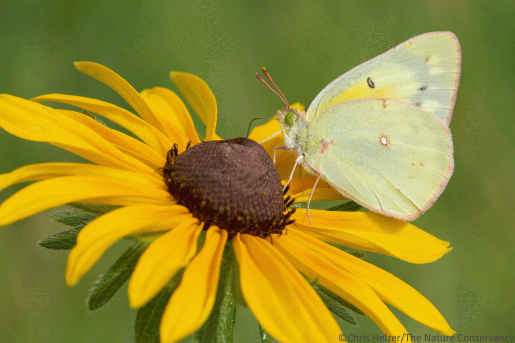 Orange sulphurs are common migrants that manage to find our little prairie every year.