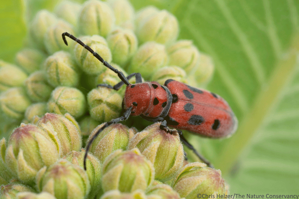 Long-horned milkweed beetles are just one of many milkweed specialist insects (along with monarch caterpillars and others) that find and feed on milkweed plants each year.