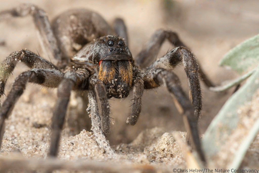 This spider may look big and scary (its leg span was about 3 inches), but when we got too close for her comfort, she didn’t attack us. She simply retreated to her burrow. Photo by Chris Helzer.