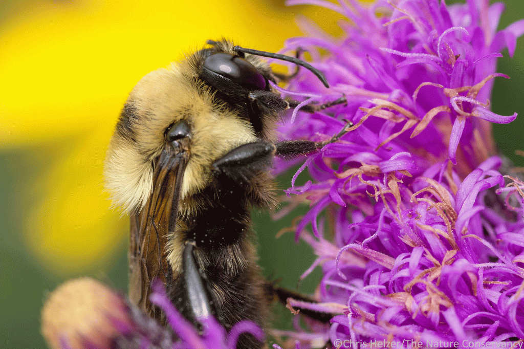 Common eastern bumble bee (Bombus impatiens) on ironweed (Vernonia baldwinii). Nikon 105mm macro lens. ISO 320, 1/80 sec, 4/14