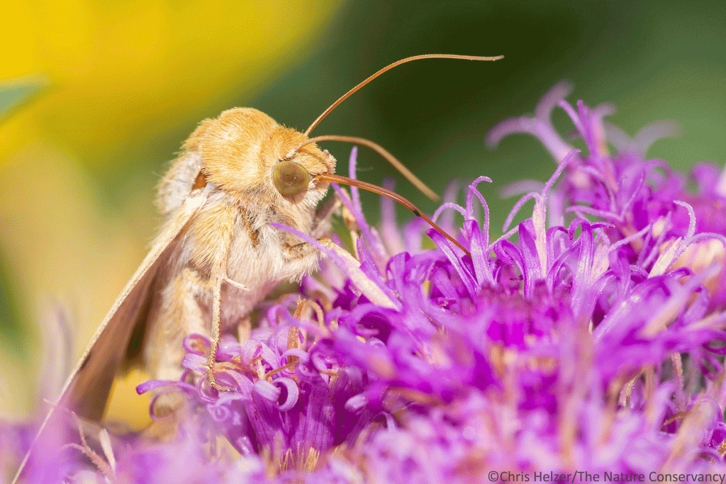 This moth was sticking its long tongue into ironweed flowers. Nikon 105mm macro lens. ISO 500, 1/250 sec, f/14.