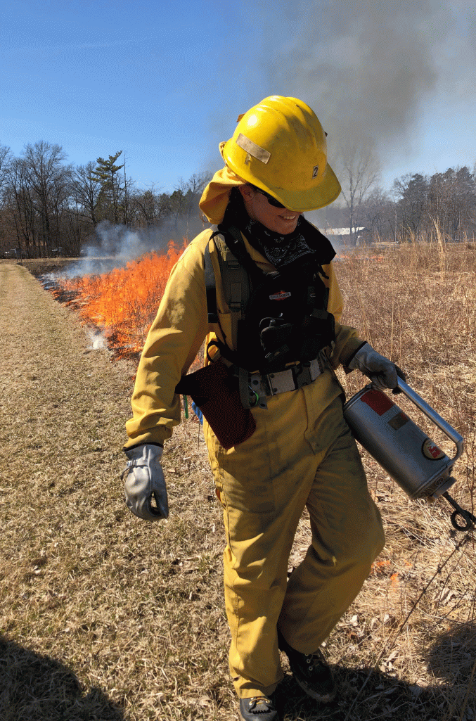 This photo is from one of my first burns with The Nature Conservancy in Iowa. Like every burn, I was excited to be there and even more so when Katie, the burn boss with our partner Louisa County Conservation, told me that I could light the head fire. She walked with me to ensure that I was feeling confident and going the right way, when all of a sudden she turned around and started taking pictures of me. The smile on my face is partially because of the work I’m doing, but I’m also laughing at the funny scene happening on the fireline. The patience and willingness of staff to put me in a position to learn is something that I will always be grateful for. Photo by Katie Hammond