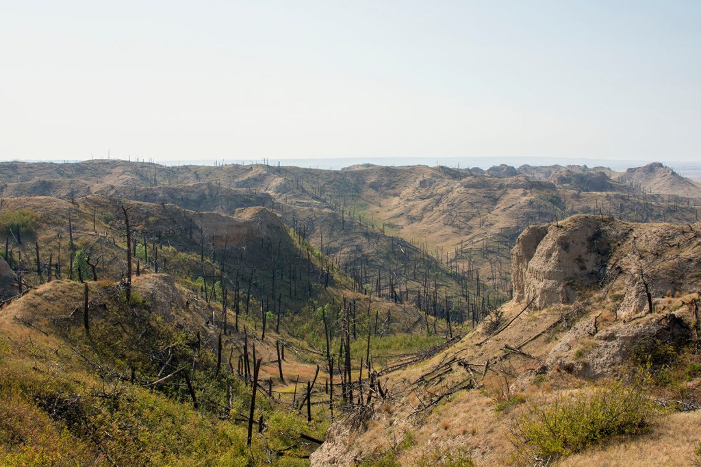 I didn’t get any great photos of the smoke plume itself, but you can see the haze from the wildfire in the distance of this one. It also shows the topography of Chadron State Park and the aftermath (standing dead trees) of a past fire.