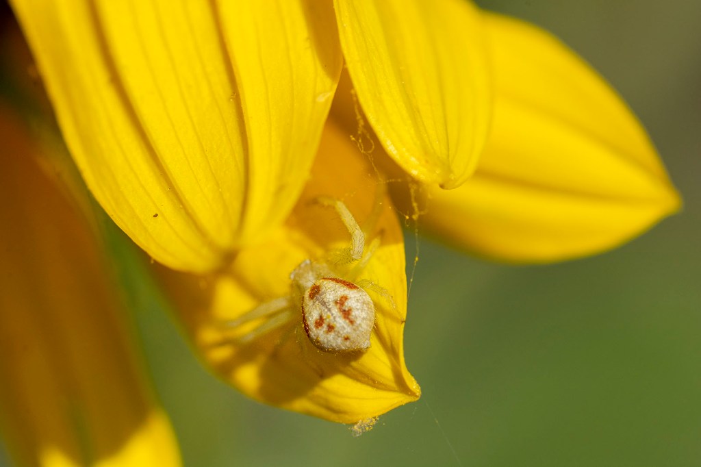 You can see some of the crab spider’s web sticking out from the folded petal. Having the macro lens on the camera makes me see the world differently. I start noticing little things that I wouldn’t have before.