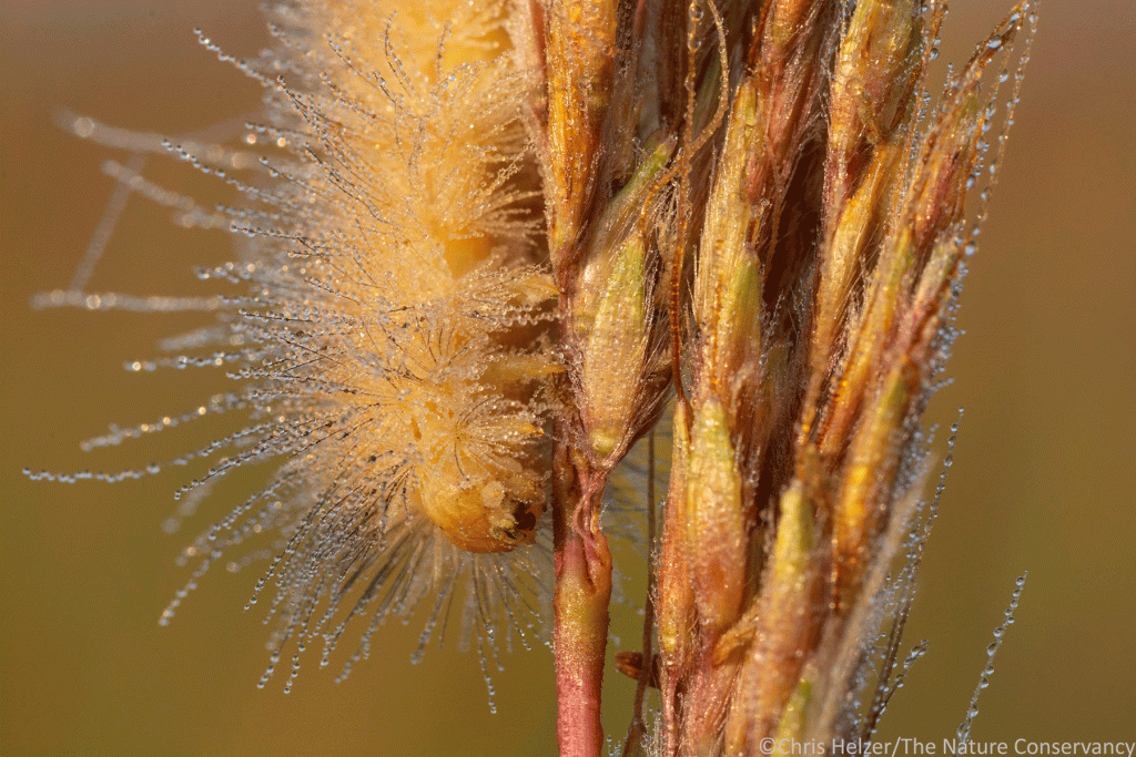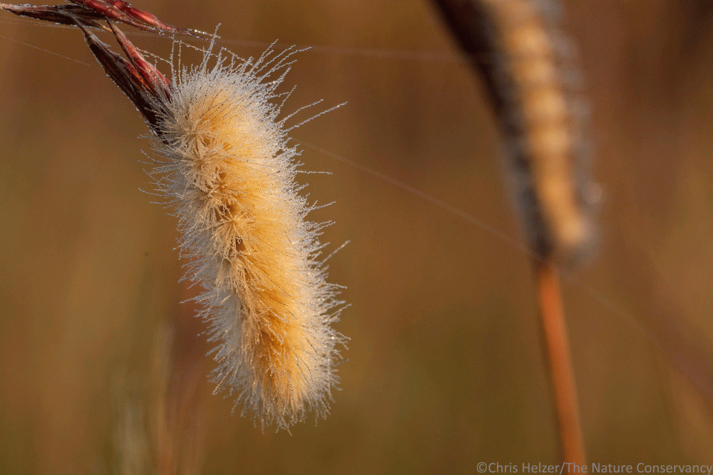 Caterpillars on big bluestem. Nikon 105mm macro lens, ISO 500, 1/640 sec, f/6.3.