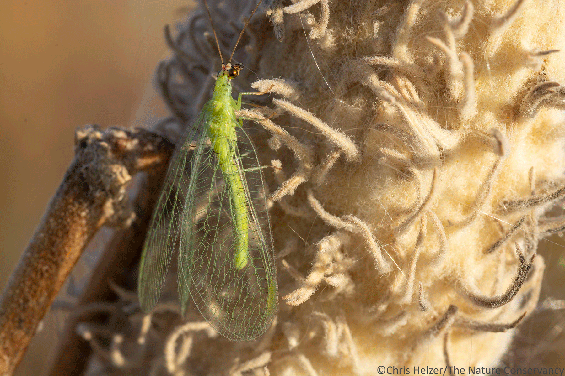 It’s an important question, but I don’t think there are specific answers – or at least I don’t know of any species that might apply everywhere. Instead, I’d do two things: First, I’d see if you can find the same insect species in your seeded prairie as you see in an adjacent (or nearby) site. That can help you see if the habitat you’re providing is sufficient (it gets trickier if there isn’t an adjacent prairie because an insect species might be absent simply because it can’t travel to your site). Second, I would look at specialist insects. That can include bees that feed only on certain plant species, for example, or butterflies with specialized larval hosts (monarchs, regal fritillaries, etc.), and can also include parasite/parasitoids that have specific hosts. Whenever you find examples of specialist relationships that are intact, I think that’s a hopeful sign. I hope that helps.