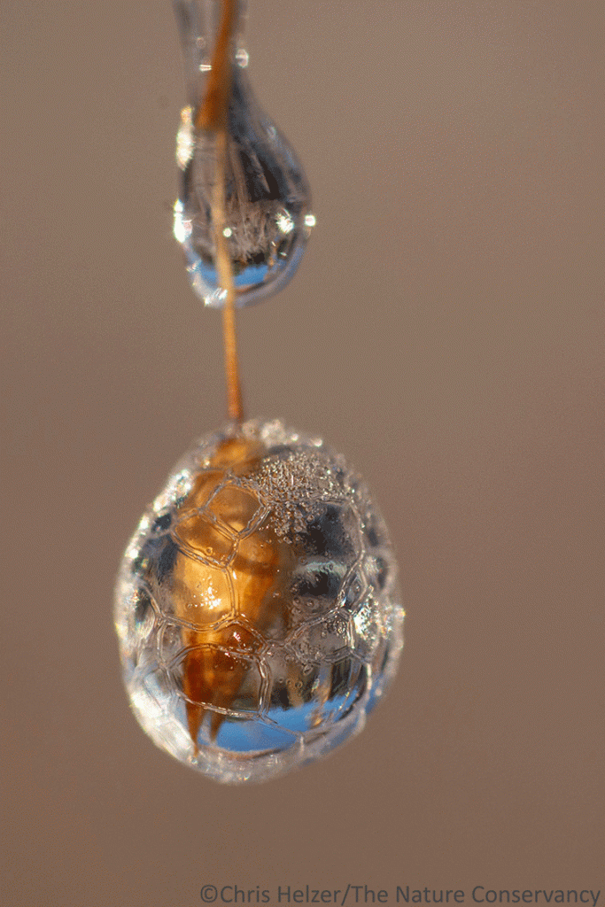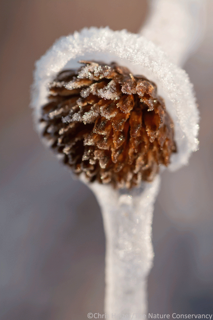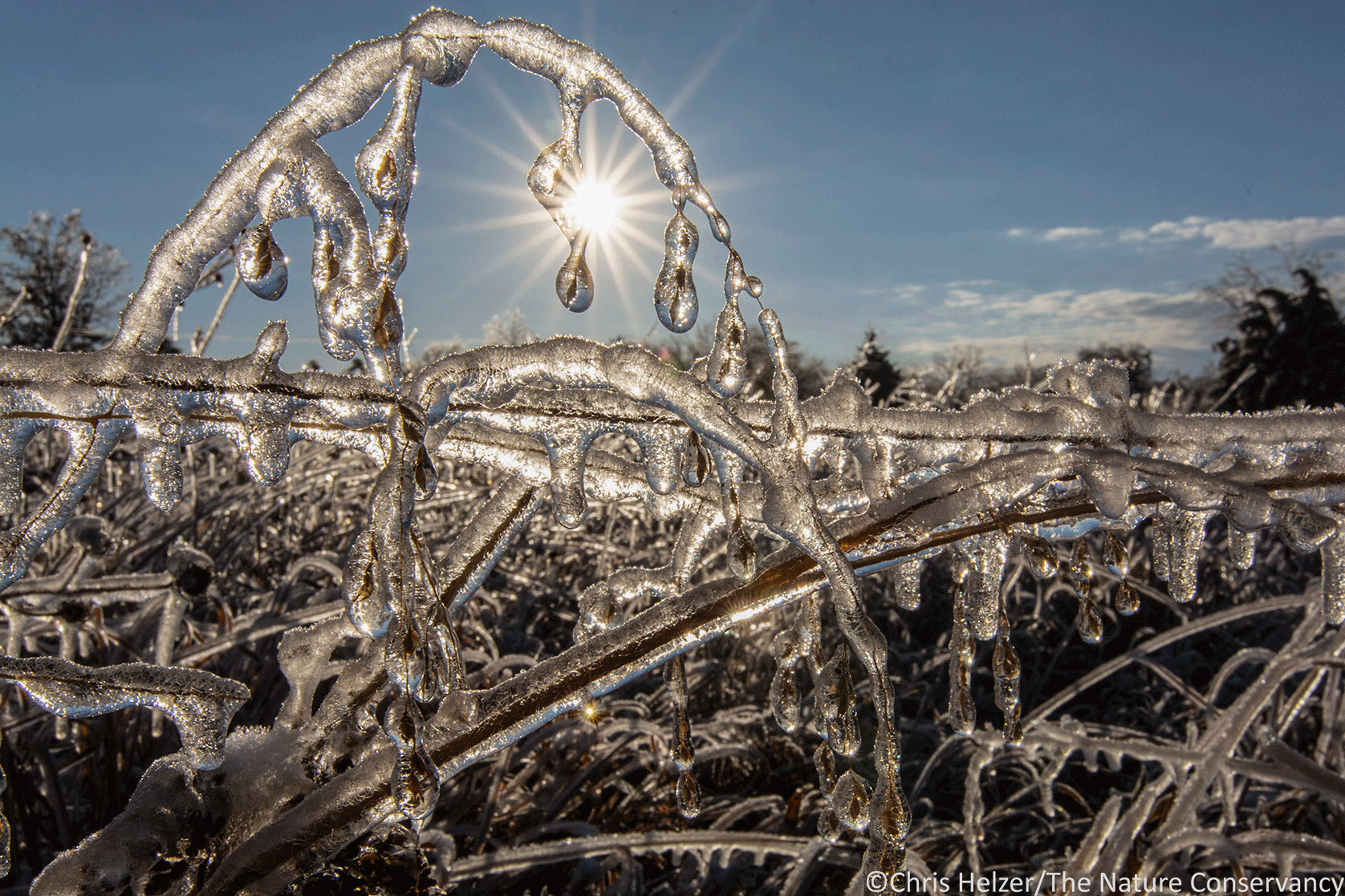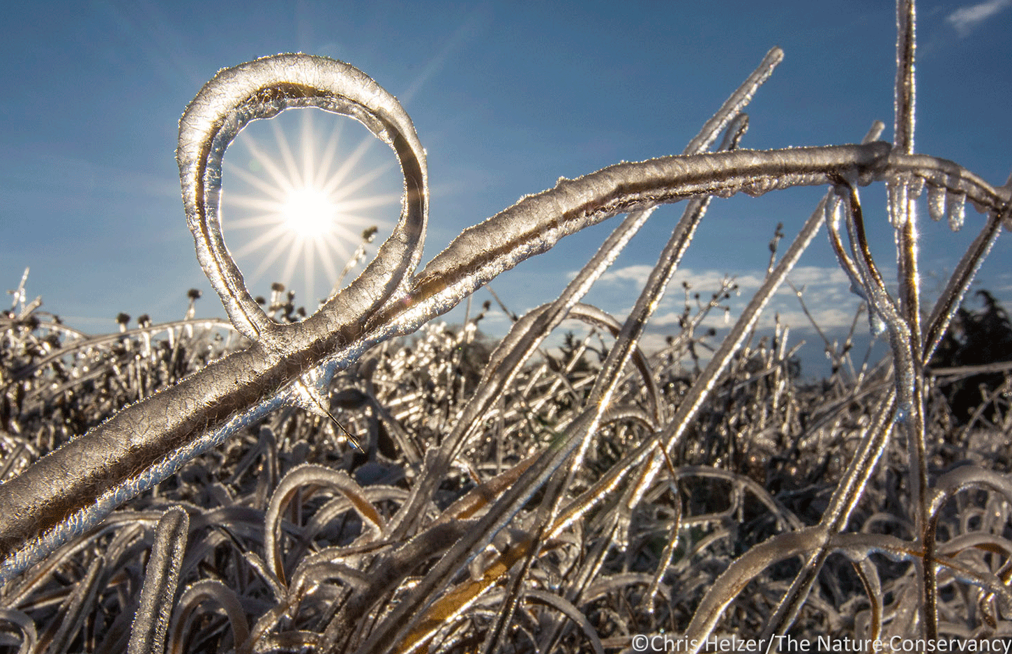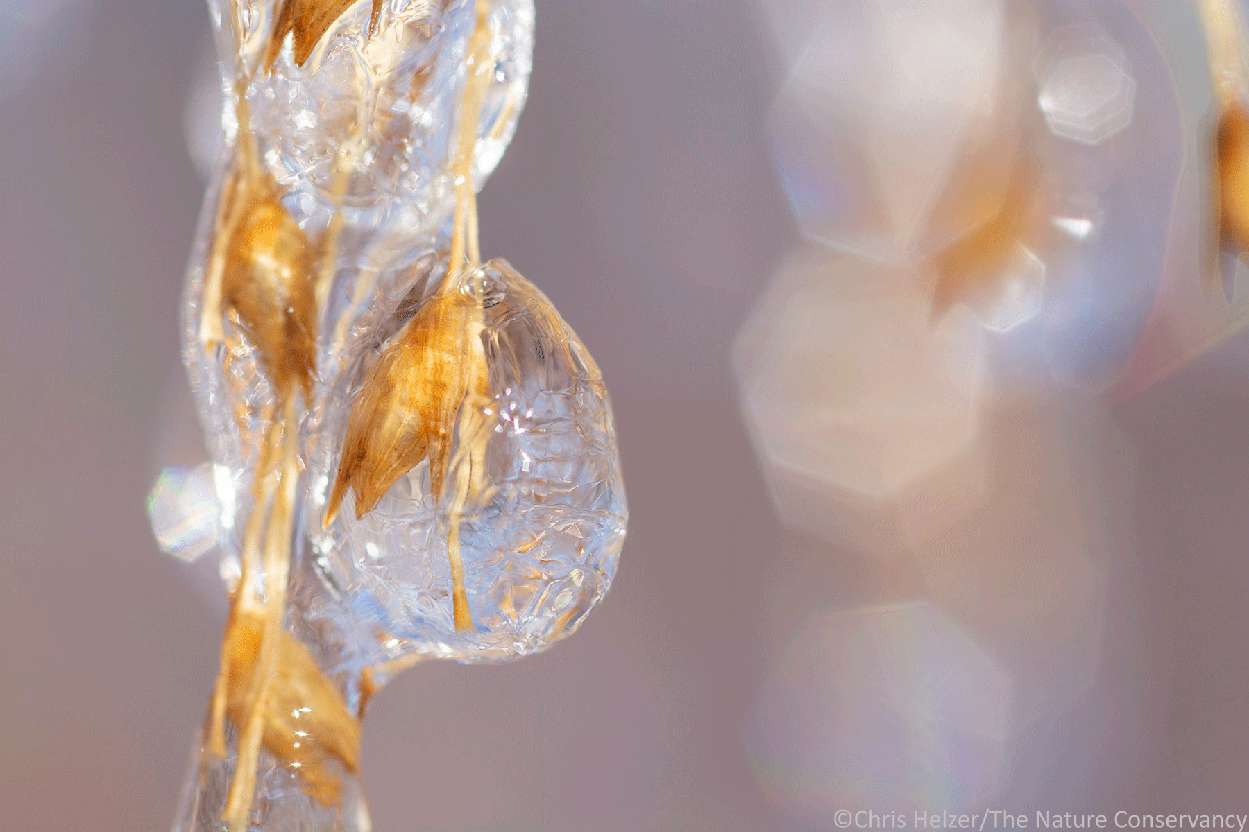 Grass loop and ice. Lincoln Creek Prairie. Nikon 105mm macro lens, ISO 320, f/22 at 1/640 sec.