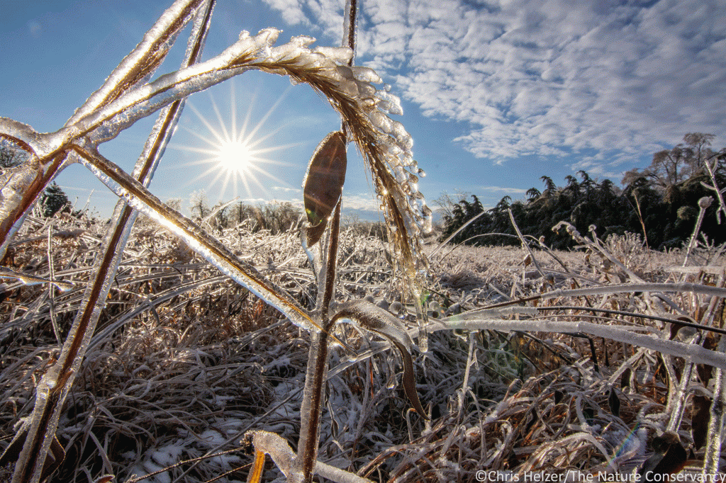 Switchgrass and ice. Lincoln Creek Prairie. Nikon 105mm macro lens, ISO 320, f/14 at 1/400 sec.