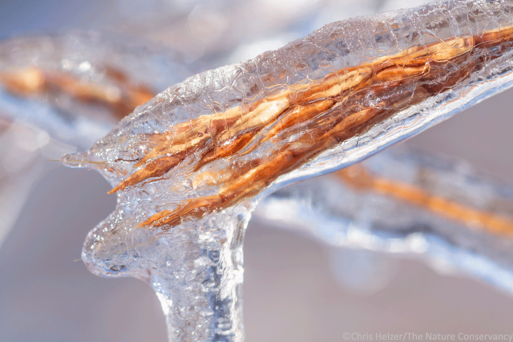 Canada wild rye and ice. Lincoln Creek Prairie. Nikon 105mm macro lens, ISO 320, f/22 at 1/250 sec.