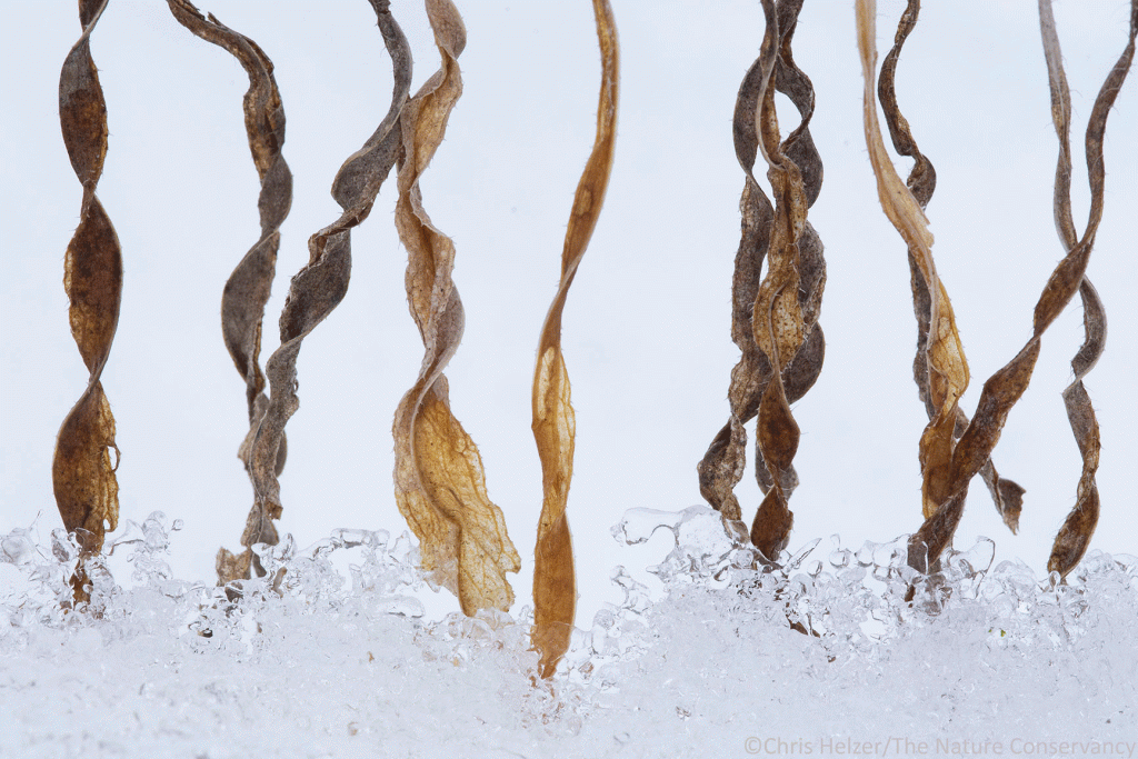 3.) Roundheaded bushclover and melting snow, Lincoln Creek Prairie in Aurora, Nebraska. March 15, 2020. Nikon D7200 with Nikon 105mm macro lens, ISO 400, f/29, 1/80 sec.