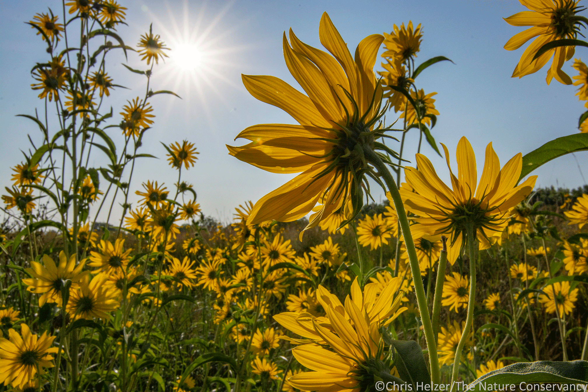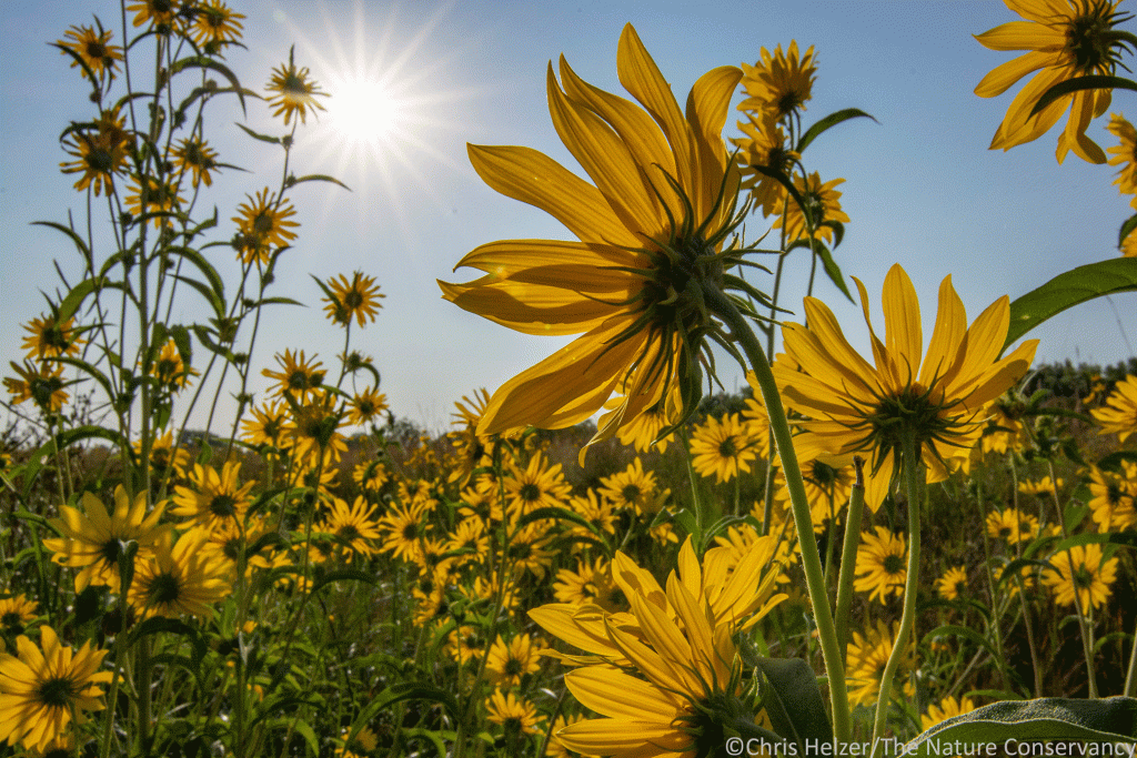 8.) Maximilian sunflowers and morning sun. Platte River Prairies. Nikon D7100 and Tokina 12-28mm lens @19mm. ISO 320, f/22, 1/640 sec.