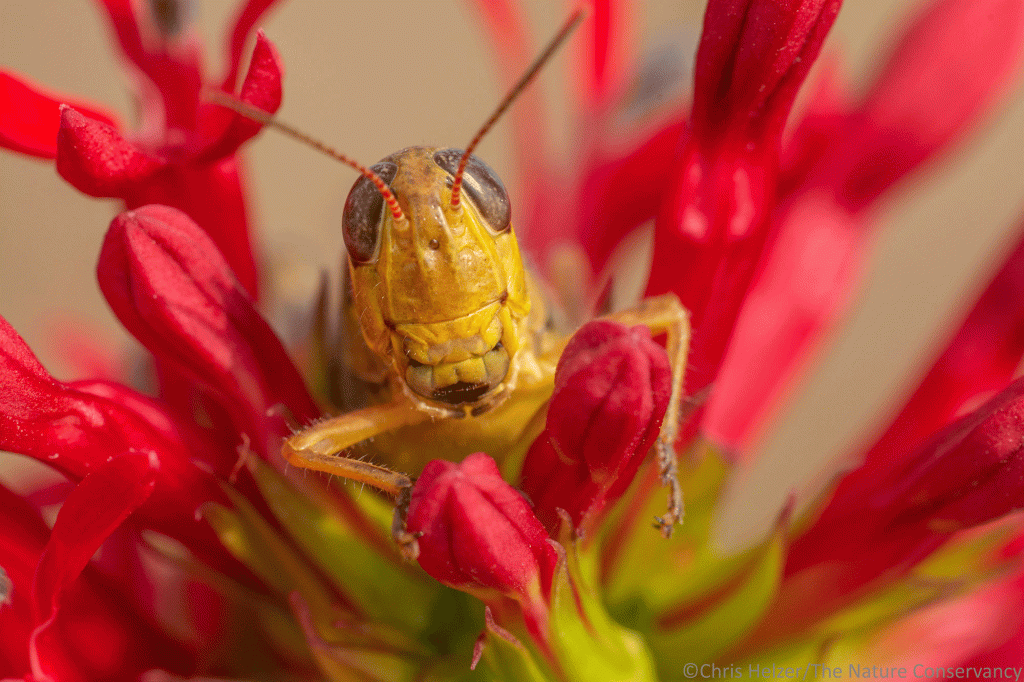 16.) Grasshopper and cardinal flower. Platte River Prairies. Nikon D7100 and Nikon 105mm macro lens. ISO 400, f/18, 1/160 sec.