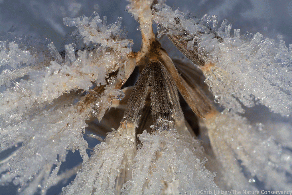 Dotted gayfeather seeds and frost at our family prairie. Nikon 105mm macro lens. ISO 320, 1/320 sec at f/20.