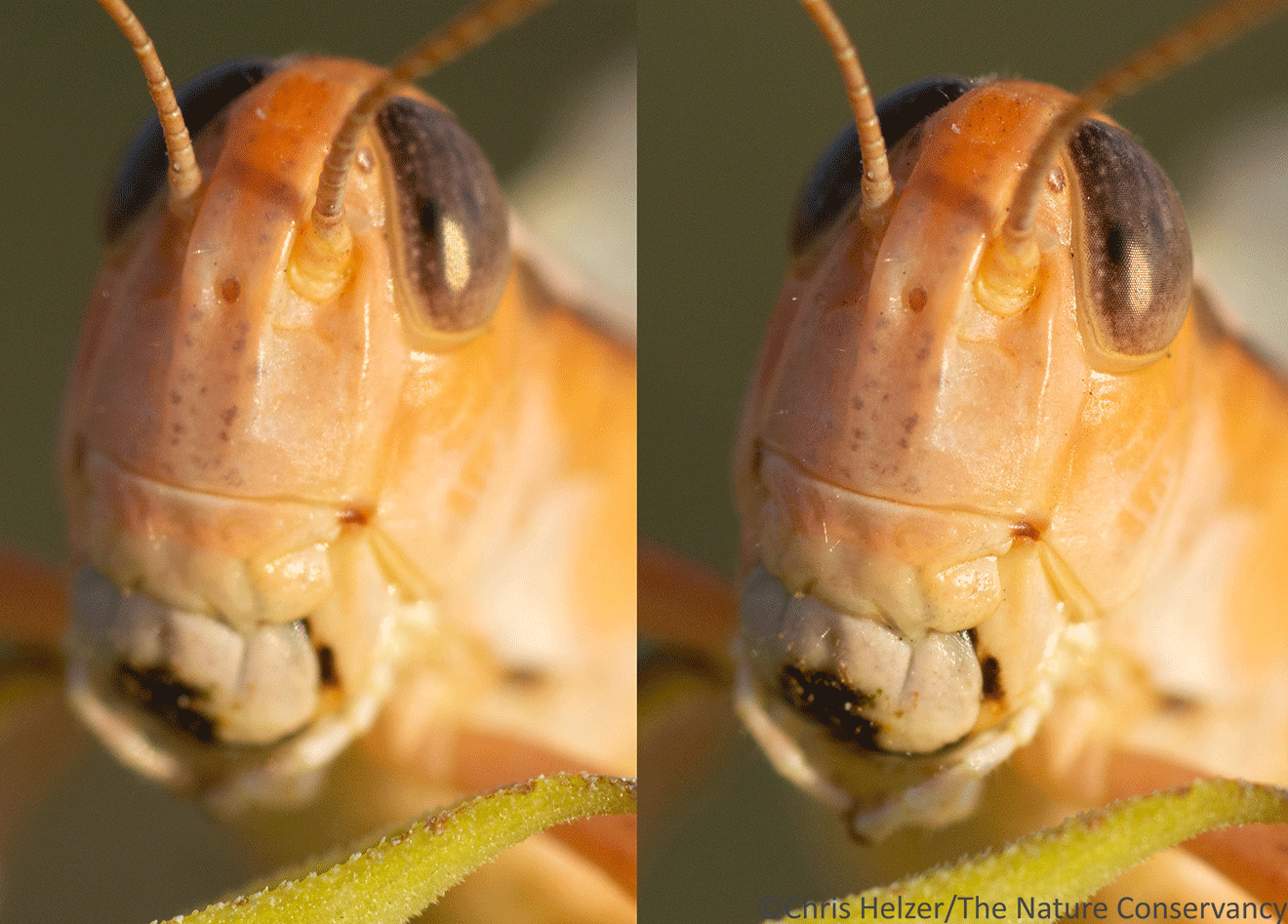 One last tip for anyone who photographs insects. Compound eyes are really tricky – especially on creatures like dragonflies or praying mantises that have enormous eyes. As you try to focus on the eye, it can be really hard to know when you’ve got it right because the eyes have depth to them and they can look in focus at various depths. I’m not sure how to explain it any better, but if you’ve tried to focus on an insects big compound eye, you might know what I mean. Usually, what I really want is for the surface of the eye to be in focus, but it’s amazing how many times I think I’ve got it right in the field, only to discover later that I missed it.
