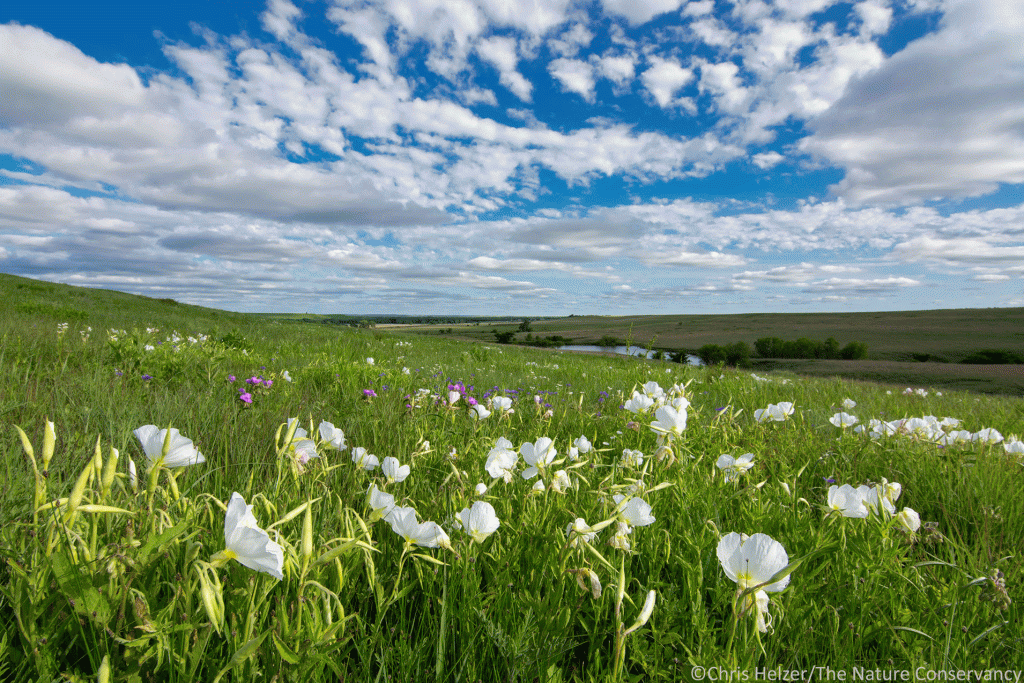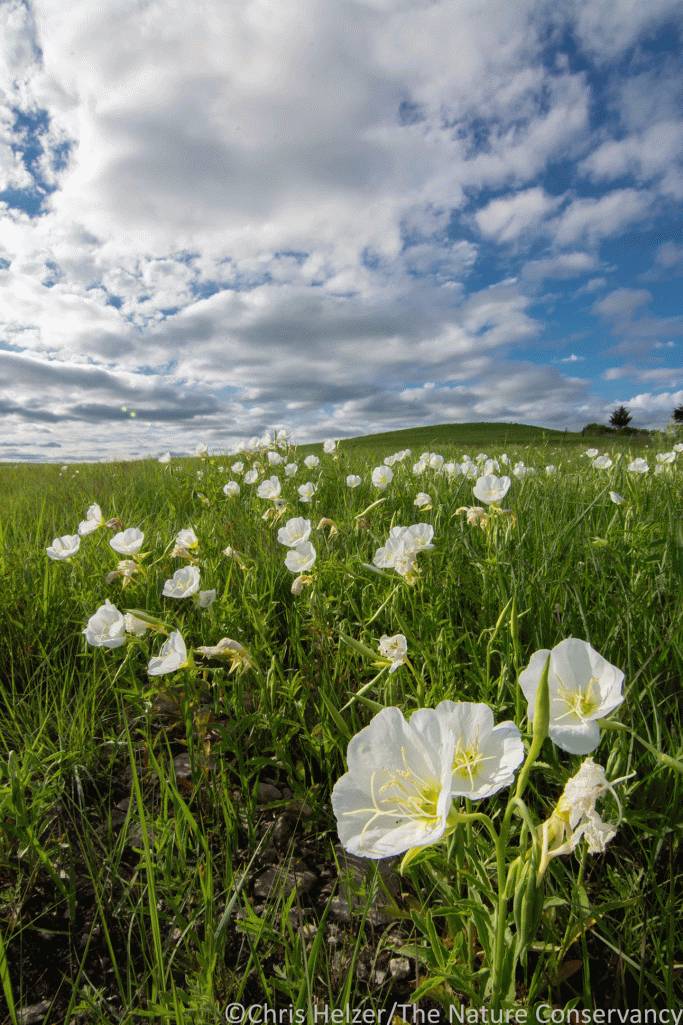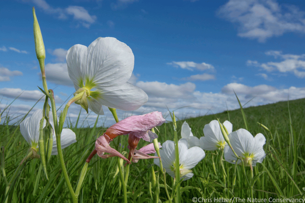 Showy evening primrose, spiderwort and sky and More showy evening primrose and sky are especially spectacular.
