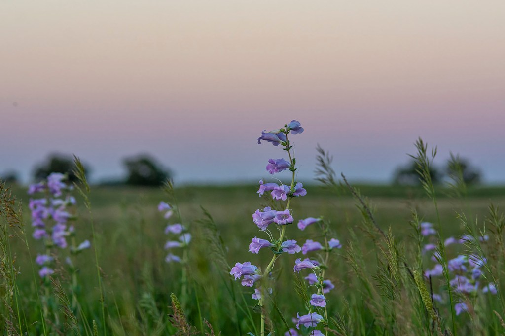 Prairie in all her mystery, featuring shell-leaf penstemon (Penstemon grandiflorus), Photo by Sarah Lueder