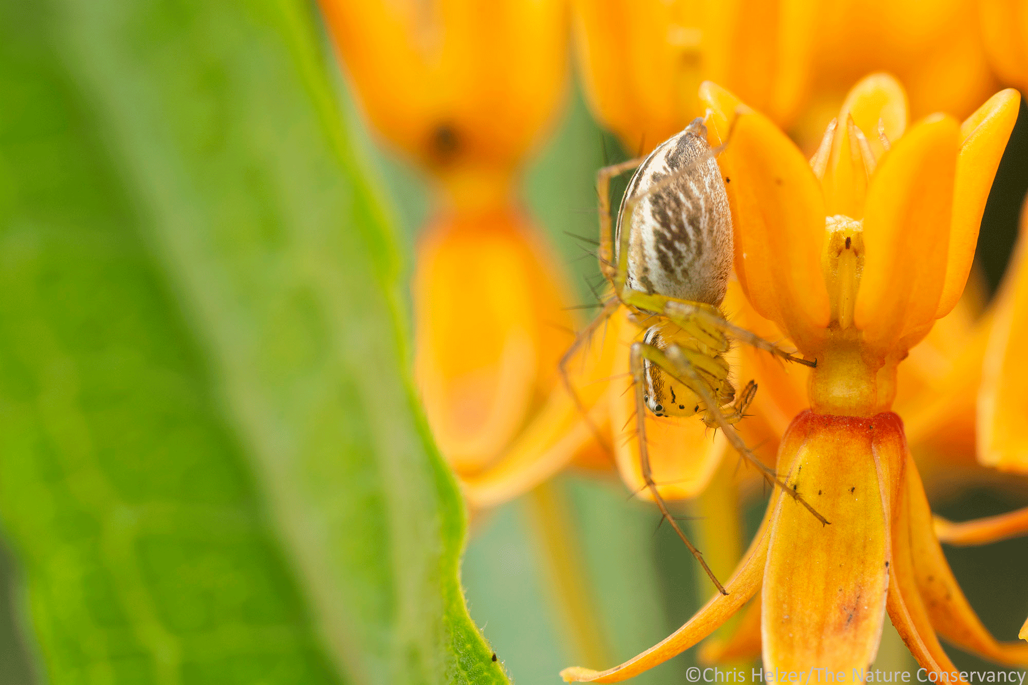 I headed across town to Lincoln Creek Prairie and spent a pleasant hour with flowers and inverts. During that time, I spent quite a while watching one particular butterfly milkweed plant. A small wasp was intent on feeding from the flowers and would repeatedly forage for a while, fly off a few feet, and then return. There was also a lynx spider hanging around on the same set of flowers and it looked to me like the two might run into each other eventually.