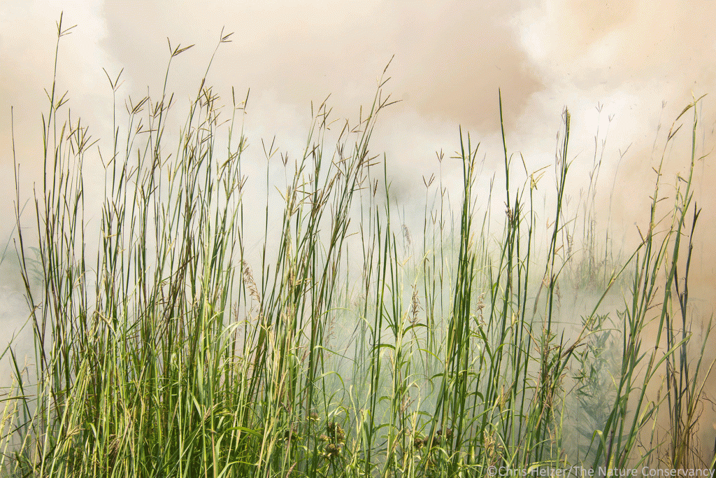 Flowering big bluestem was surrounded by smoke right before it was consumed by flame.