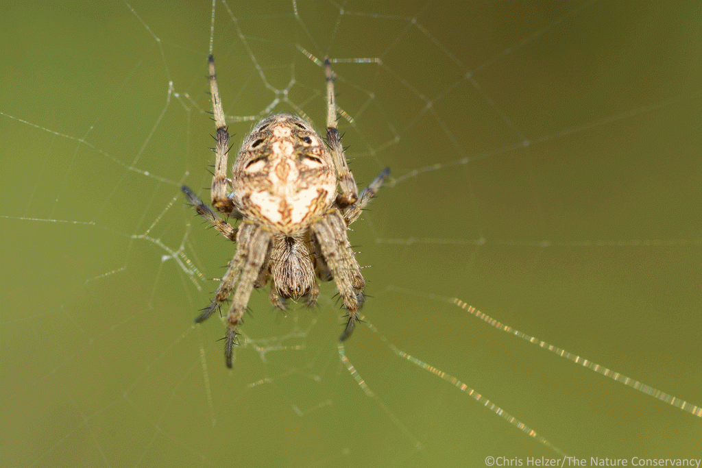 In other news, my wife Kim is training for an ultramarathon later this fall. Last weekend, I drove her to and from southeast Kansas so she could do some long training runs on the rocky trail the race will take place on. While she did her obscenely long trail runs, I wandered much more slowly around with my camera, trying to find something to photograph. The dense woodland along the trail and the weedy, brushy habitats nearby didn’t provide much for flowers or pollinators, but spiders were all over the place. That was ok with me, I like spiders just fine.
