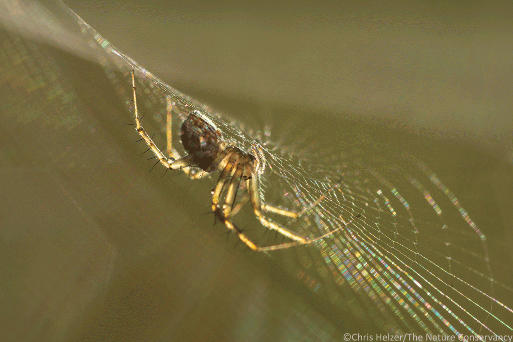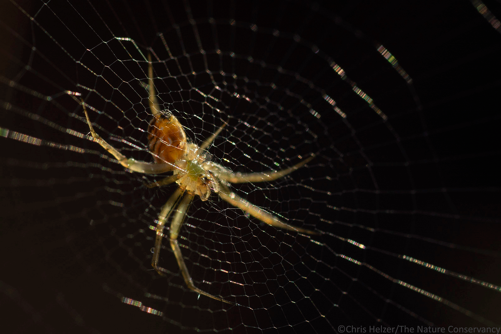 The spiders are lovely, but those tiny ‘rainbows’ in her web are spectacular! I love your macro shots.