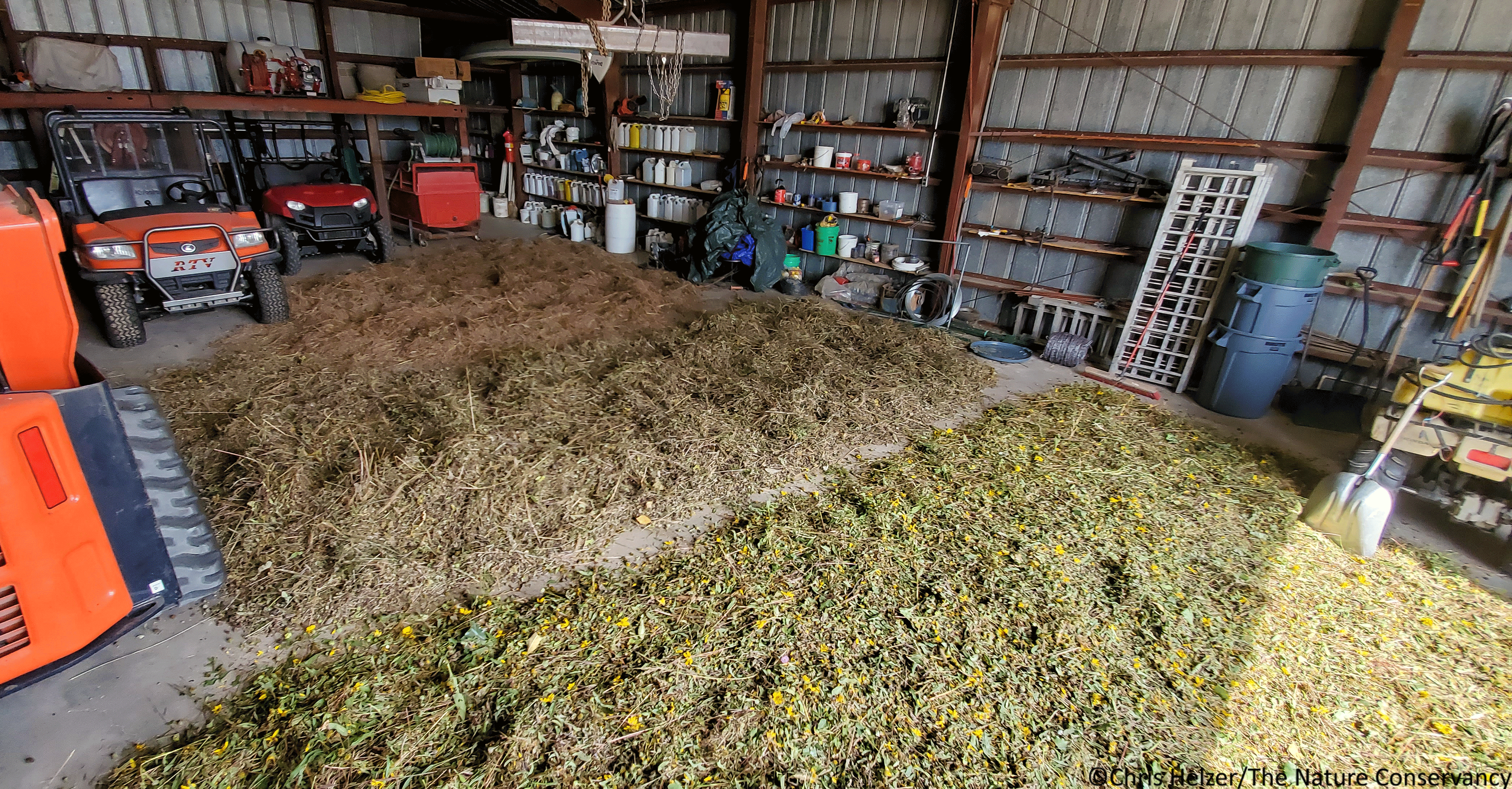 I hope no one needs to park anything in the shed when they get back because I ran out of room in the seed barn and had to overflow here to find space to lay out the seed to dry.