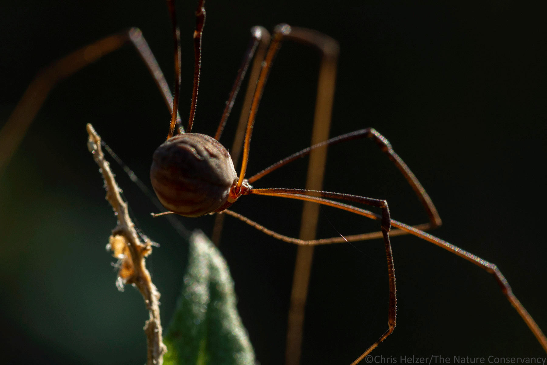 One of the other fun things about working on the edge of shadows is that there are shadows I can use as backgrounds. If I put the subject between me and the sun, I can shoot a backlit daddy longlegs, for example, with a dark shadowy background. It’s fun to play with ‘mood lighting’ in that way.