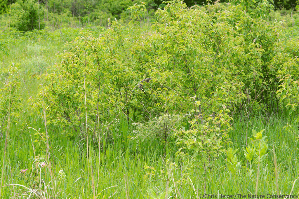 At both small and large scales, it’s increasingly clear that we’re not going to be able to keep invasives from dramatically transforming some of our prairies into new ecosystem types. A recent study at the University of Nebraska-Lincoln, for example, has documented huge northward shifts in Great Plains ecosystems by analyzing long-term bird data across the region. Much of those shifts are associated with continued woody encroachment. Similarly, scientists in eastern Kansas are finding that while plant diversity does best with ‘intermediate frequencies of fire’, very frequent fire seems to be necessary to hold back the march of trees and shrubs. Frequent fire is being employed (often annually) in many eastern tallgrass prairie fragments too, because of high pressure from woody plants. That high rate of burning, especially in isolated patches, is likely having significant impacts on invertebrate communities and causing unpredictable feedback loops on the rest of the prairie ecosystem and its long-term future.